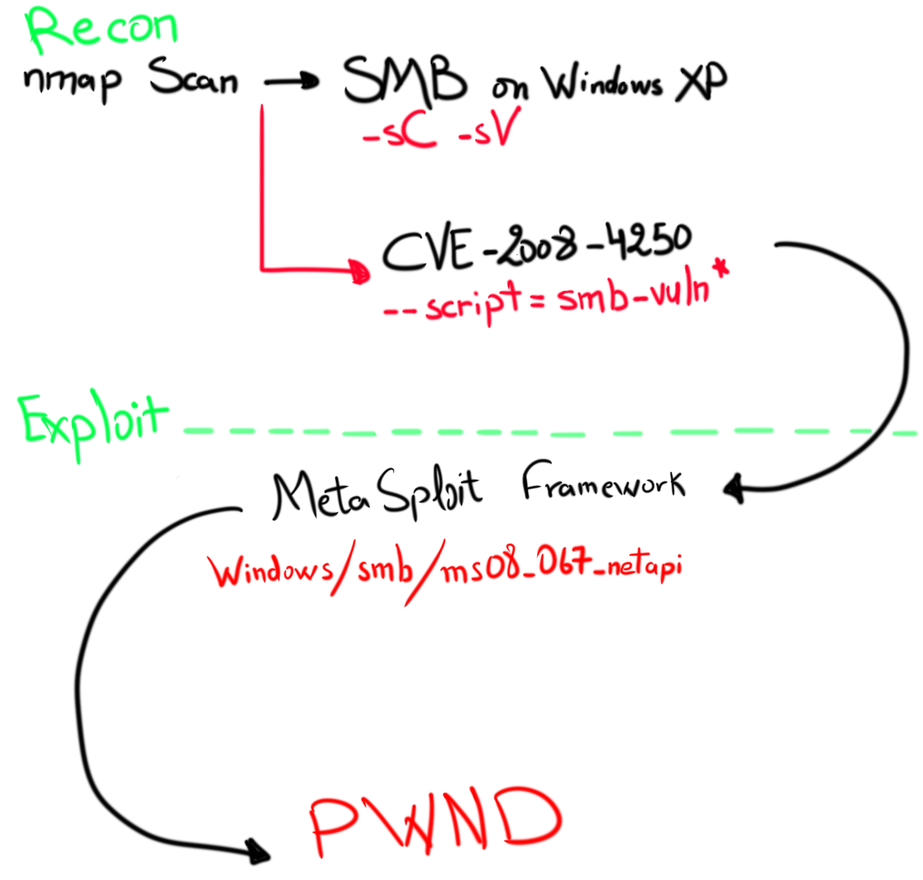 Easy Windows XP machine vulnerable to MS08‑067 EternalBlue SMB exploit for root.